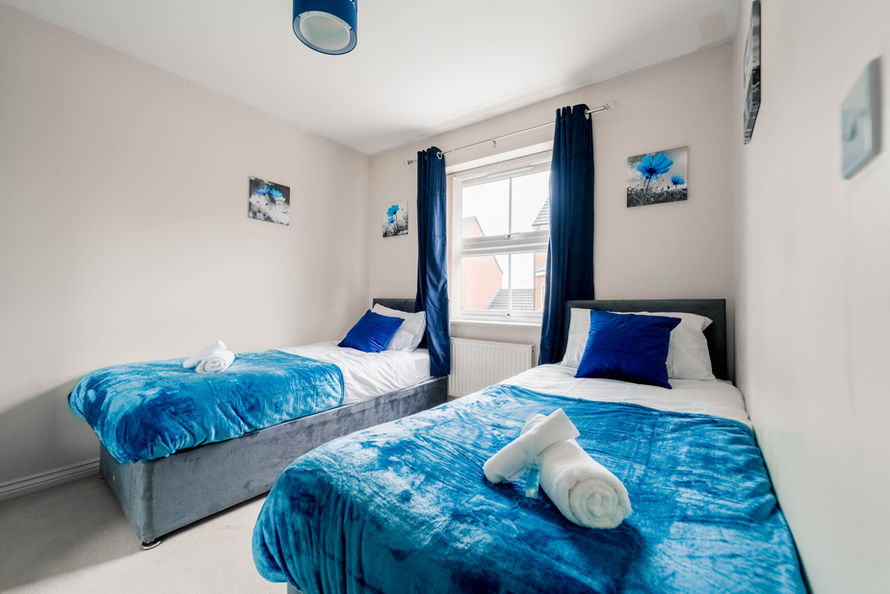 This beautifully maintained 3-bedroom house is perfect for up to 5 guests, offering five single beds, free WiFi, and complimentary parking. Whether you're traveling for leisure or business, you’ll find everything you need, from a fully equipped kitchen to a spacious lounge with a Smart TV for ultimate relaxation. The house comes professionally cleaned, with premium quality linen and towels, making your stay as comfortable as possible. The home is ideal for long stays, providing ironing facilities, laundry equipment, and more, ensuring you feel at home. The property also benefits from super-fast WiFi, perfect for streaming or work.